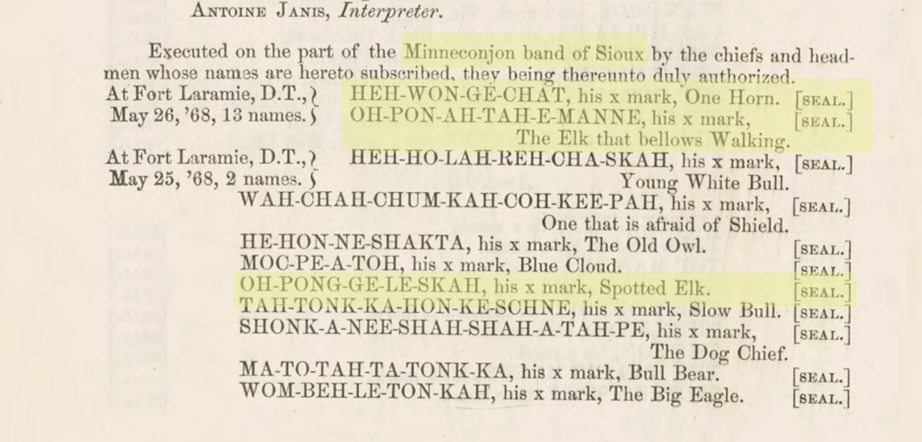 The Fort Laramie Treaty signatures serve as fixed documentary anchors that, when read alongside oral history and descendant testimony, help ensure that Minneconjou leaders such as Lone Horn, Spotted Elk, and She Elk Voice Walking are remembered as distinct yet closely related figures within their historical and cultural context.